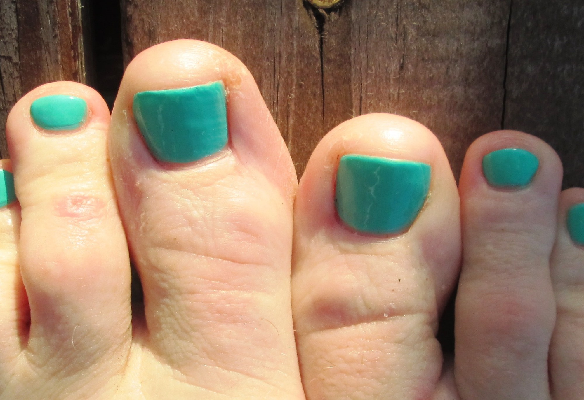 My toe nails are Tiffany Box Blue.  This plucky pedicure choice is because it is February and sandal season isn’t for another three months. Mary has opted for a dark violet and Sue is heading to Florida in two weeks and went with a neutral, pale pink.