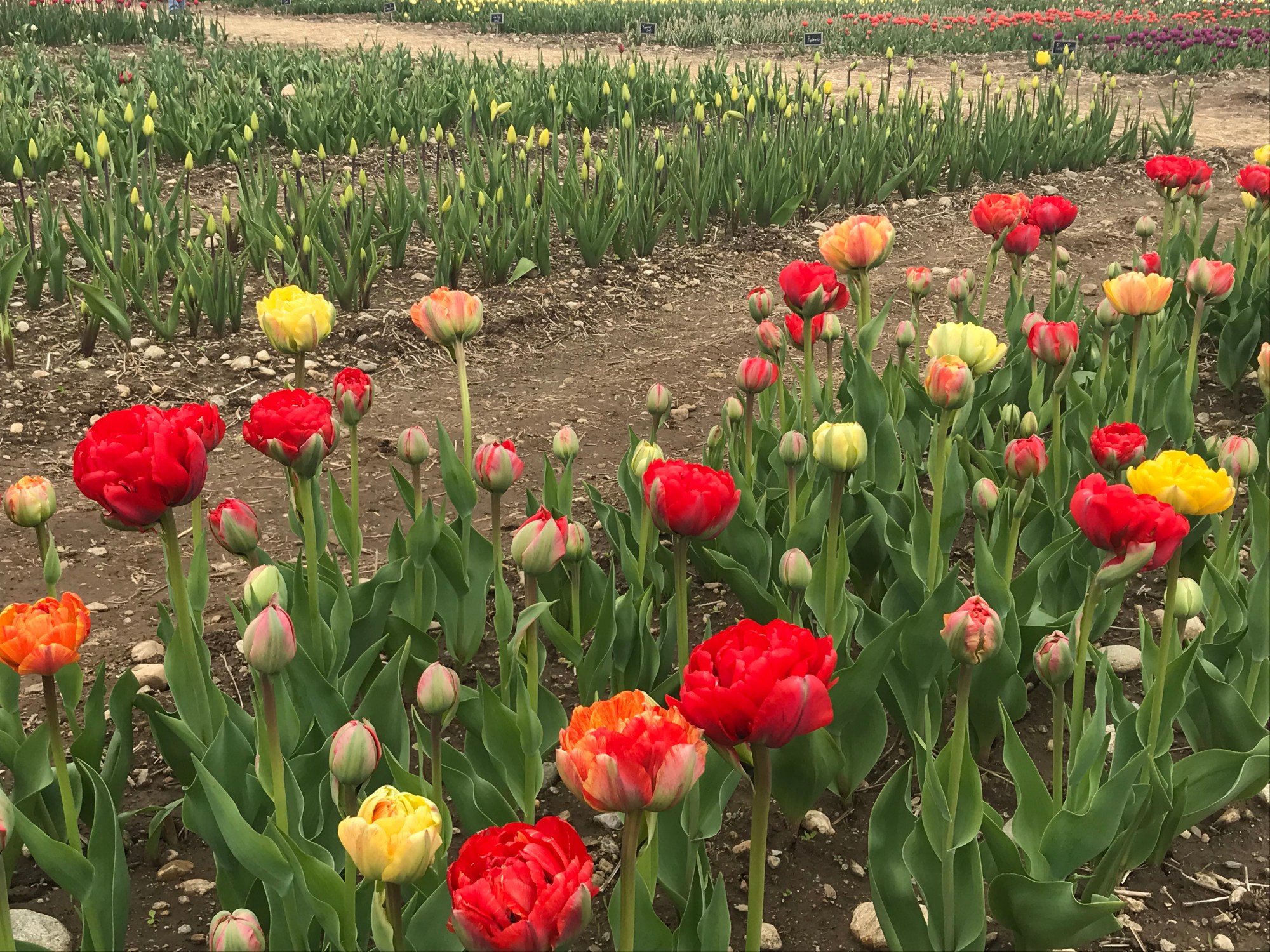“I feel like a little girl,” my mom smiled as she walked down a dirt path flanked by rows and rows of budding tulips. She knelt down to gently pull a long stem from the ground, its lacy petals so delicate.