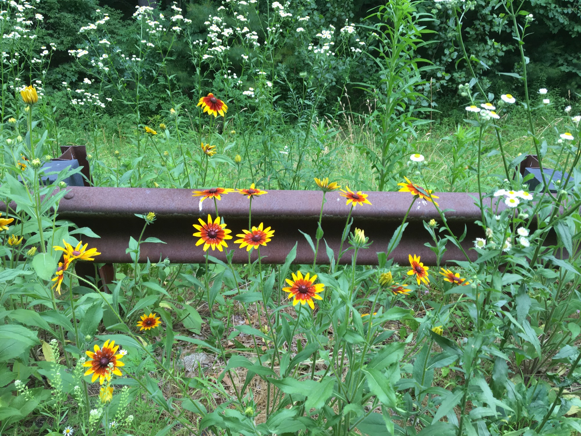 The relentless annoyance distracted her from the scenery. Purple lupines, daisies, and wild Black-Eyed Susans swayed in tall grass, framing an expansive view of green mountains and the steep Stratton Mountain trails below.